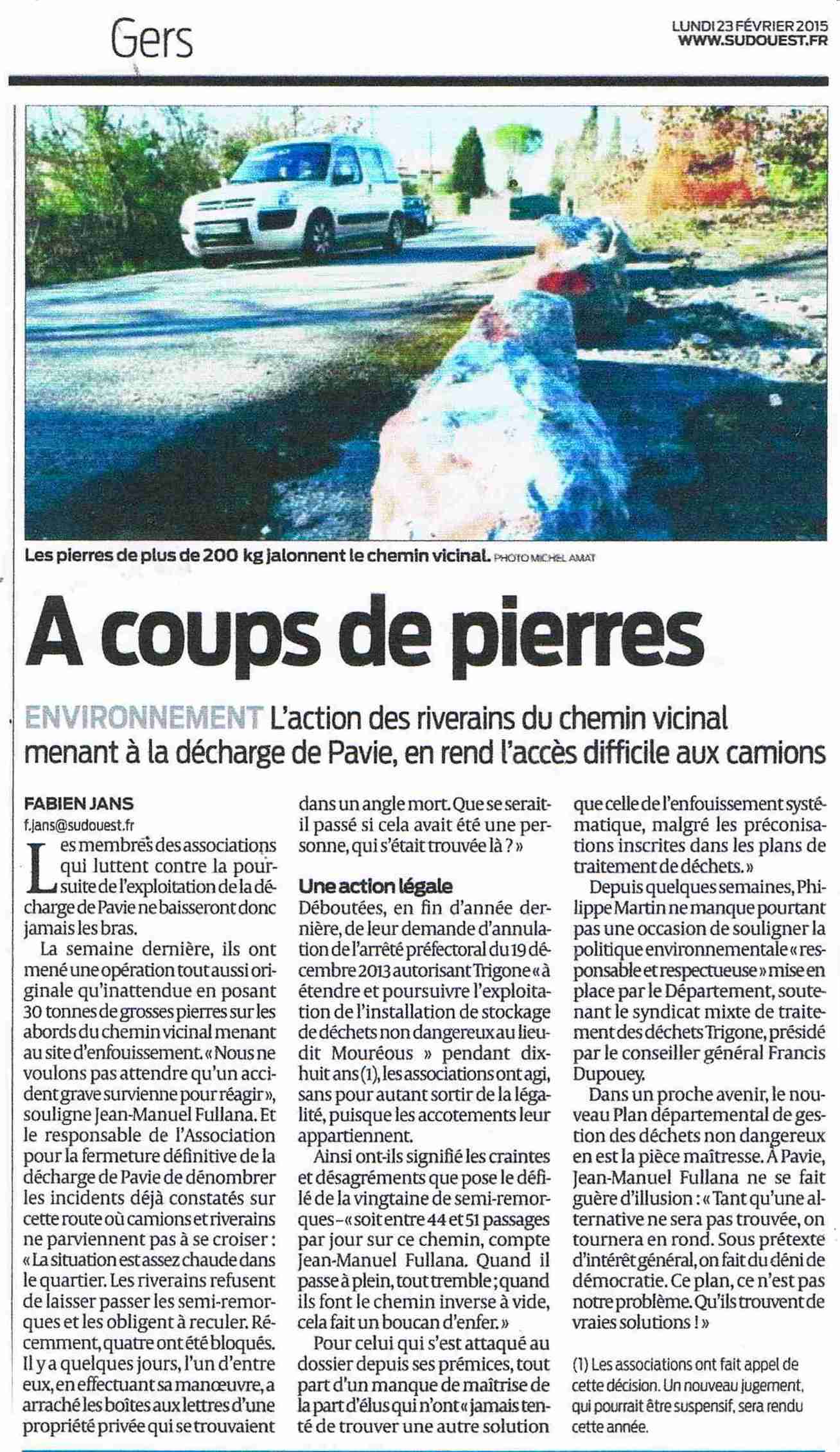- 23 février article de Sud-Ouest,